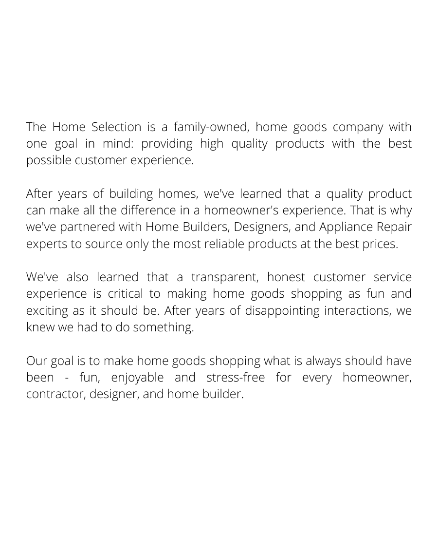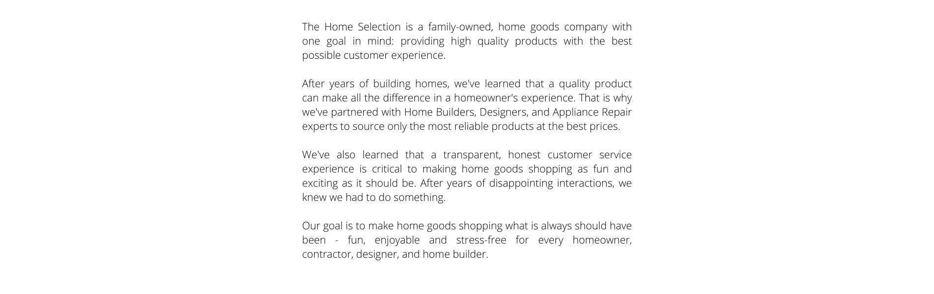 At The Home Selection, you are guaranteed the highest quality products from the most trusted manufacturers. Each manufacturer has been chosen based on their quality and reliability, backed by manufacturer product warranties.