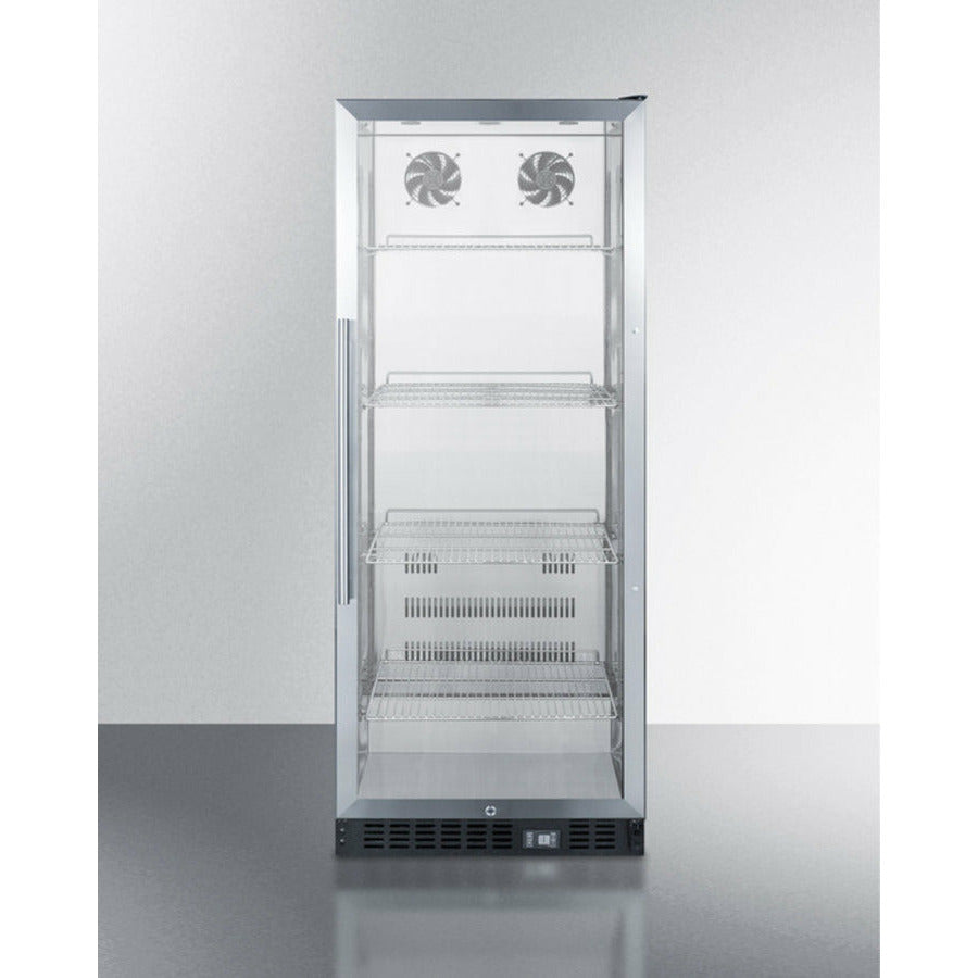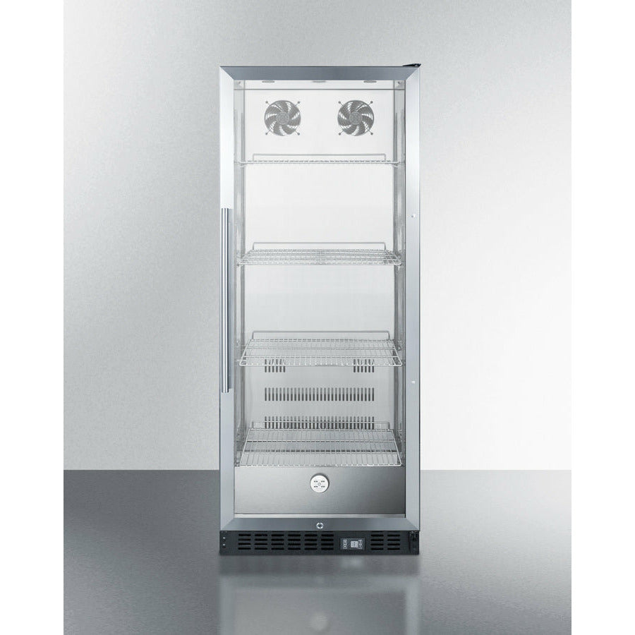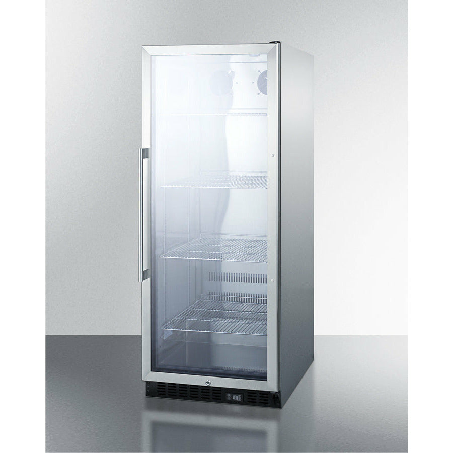 SUMMIT SCR1156CSS offers 11 cu.ft. of storage space in a slim width just under 24". Bottles and cans be stored on heavy duty cantilevered shelves, easily adjustable to accommodate a variety of sizes. The interior is fully constructed from stainless steel for easy cleanability and long-lasting durability. LED lighting offers full illumination of stored products and a digital thermostat ensures easy and intuitive temperature management. The readout can be viewed in Celsius or Fahrenheit.