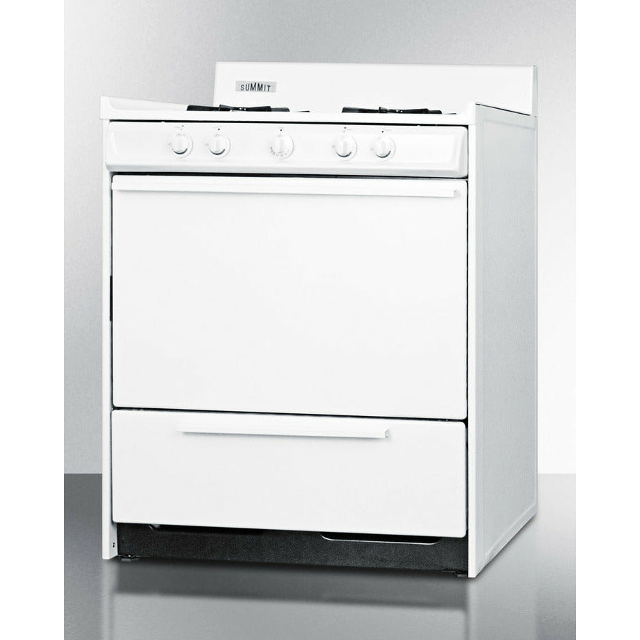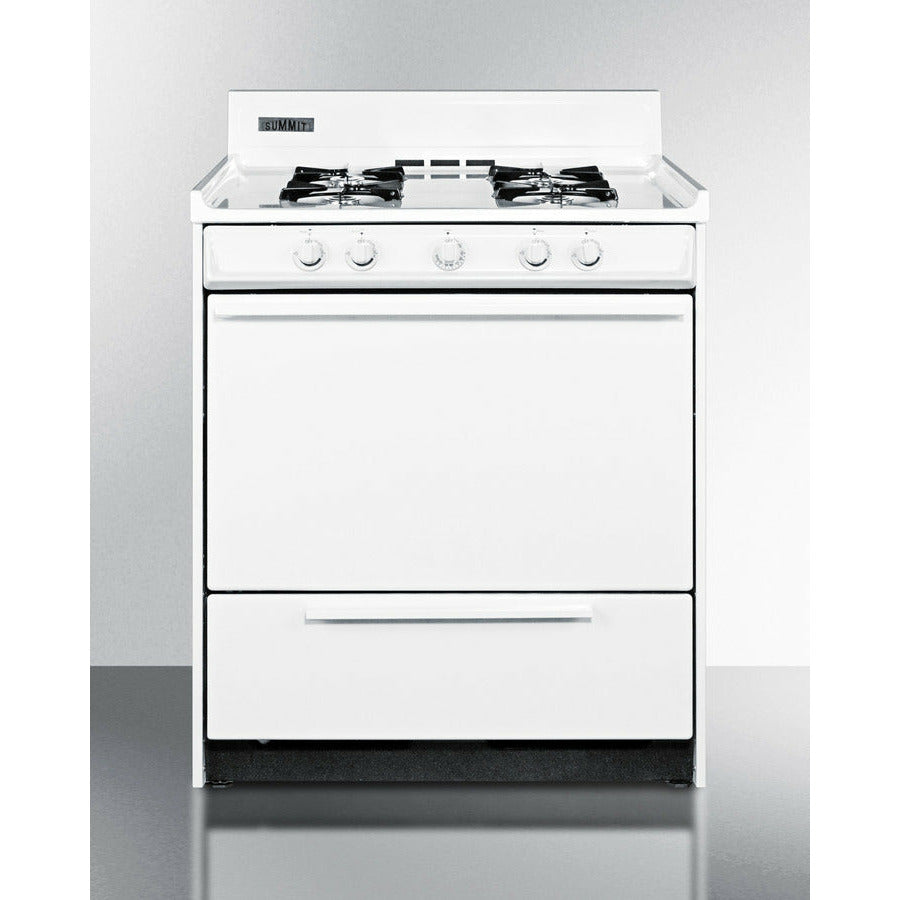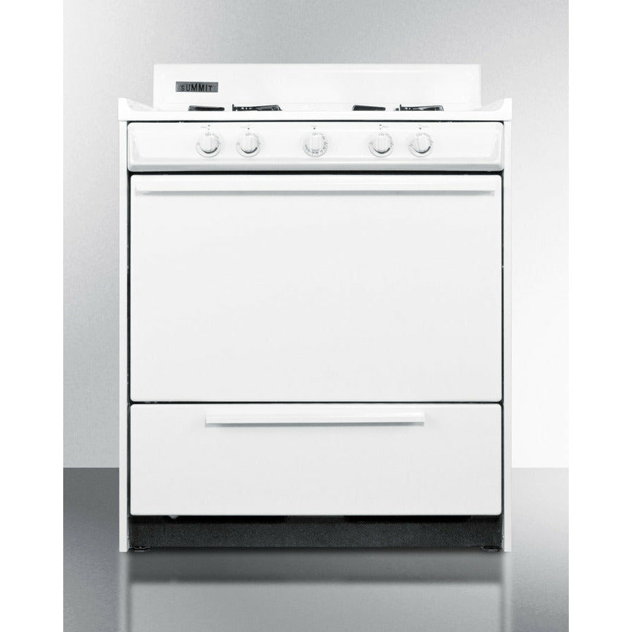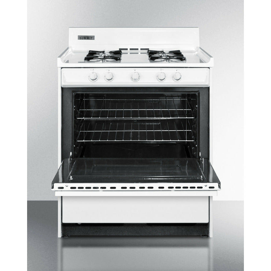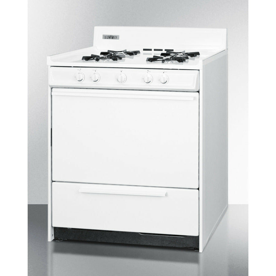 Sized at 30" wide, the WNM210P is a complete gas range with four open 9000 BTU burners, a 3.7 cu.ft. oven, and lower drop-down broiler compartment. It utilizes battery start ignition, ideal for rural areas or other homes not using electricity to power appliances. This item is set for natural gas. To convert for propane use, add accessory Kit LPP.