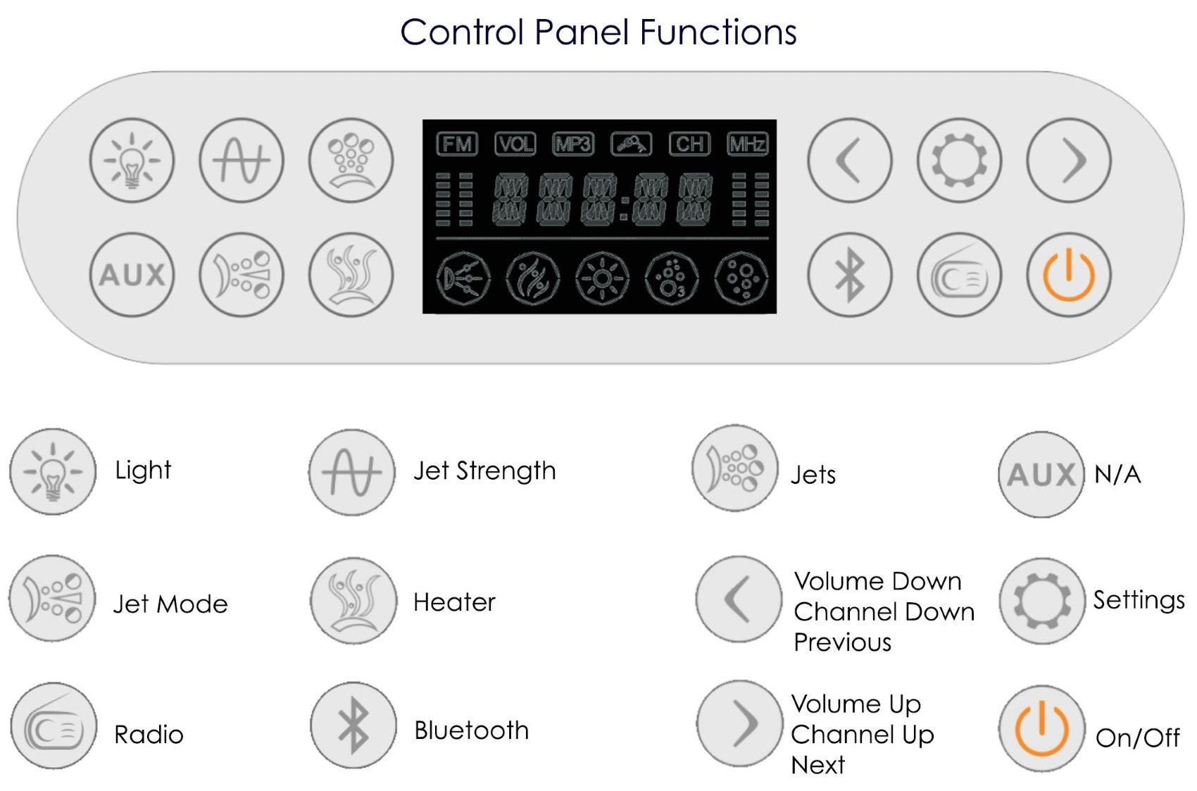 Materials: Acrylic tub with hydro-massage and air jets