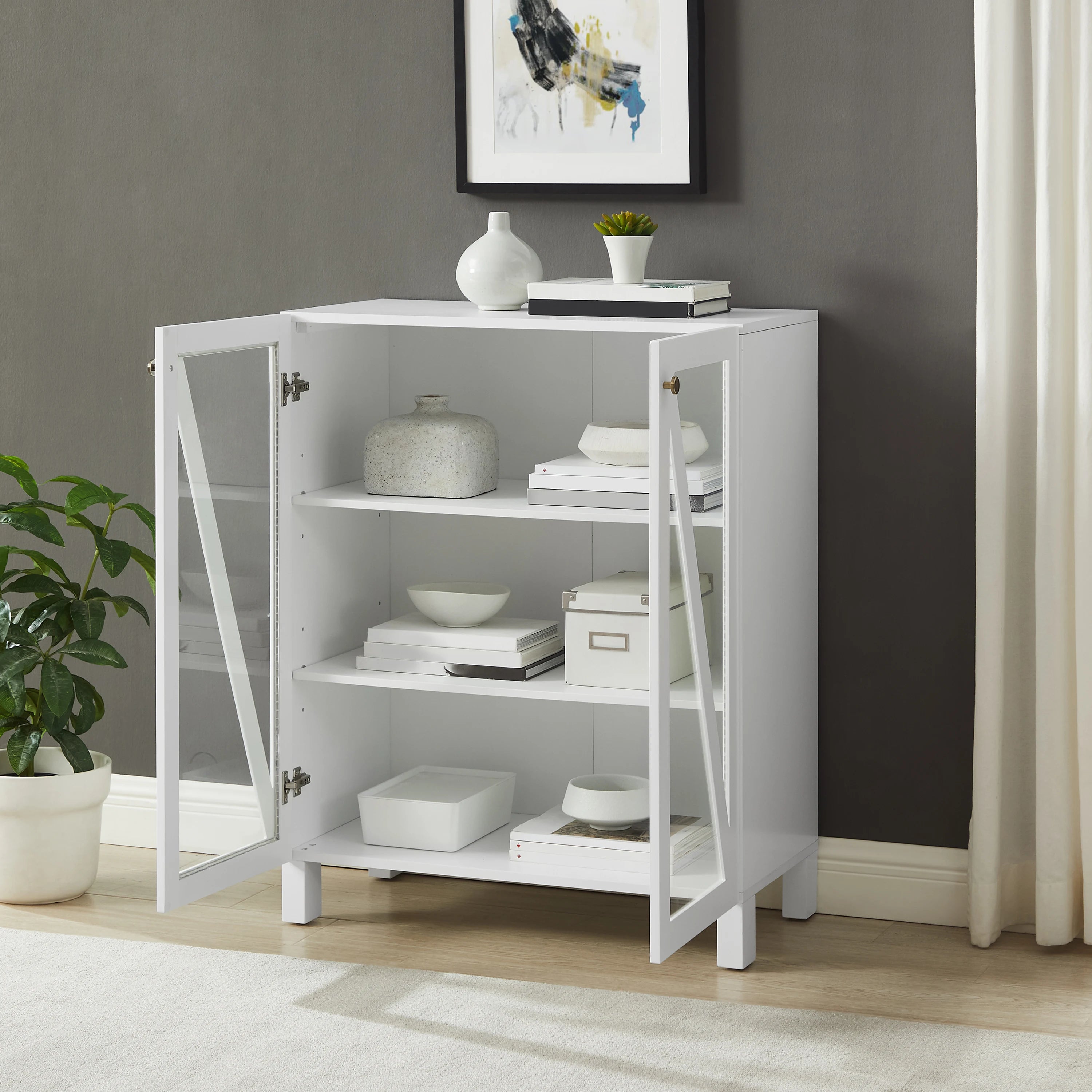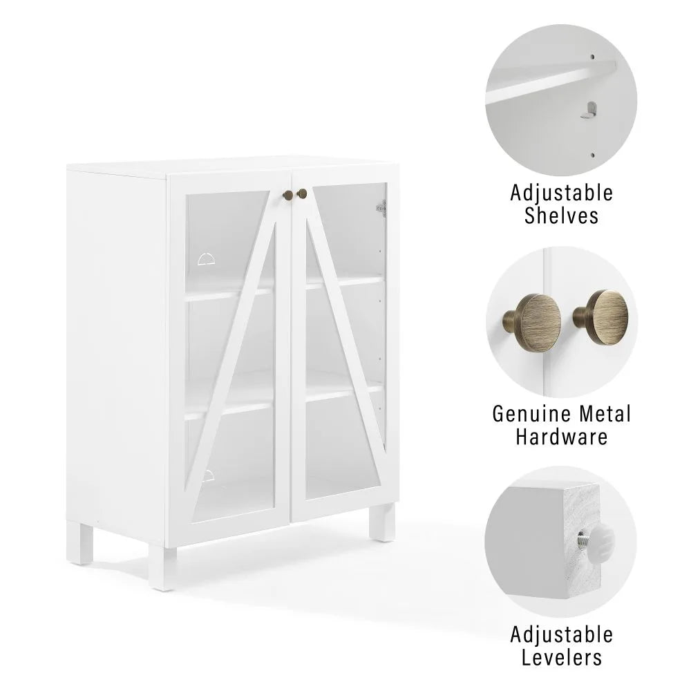 The Cassai Stackable Storage Pantry delivers stylish and versatile storage for your kitchen, utility room, or laundry area. Featuring two adjustable shelves, this cabinet is perfect for dishes, linens, or cleaning supplies. Showcasing slanted wood accents behind tempered glass doors, the Cassai cabinet brings modern farmhouse charm to home organization. Designed with modular functionality, it can stand alone, be stacked with another unit, or paired with multiple cabinets for expanded storage solutions.