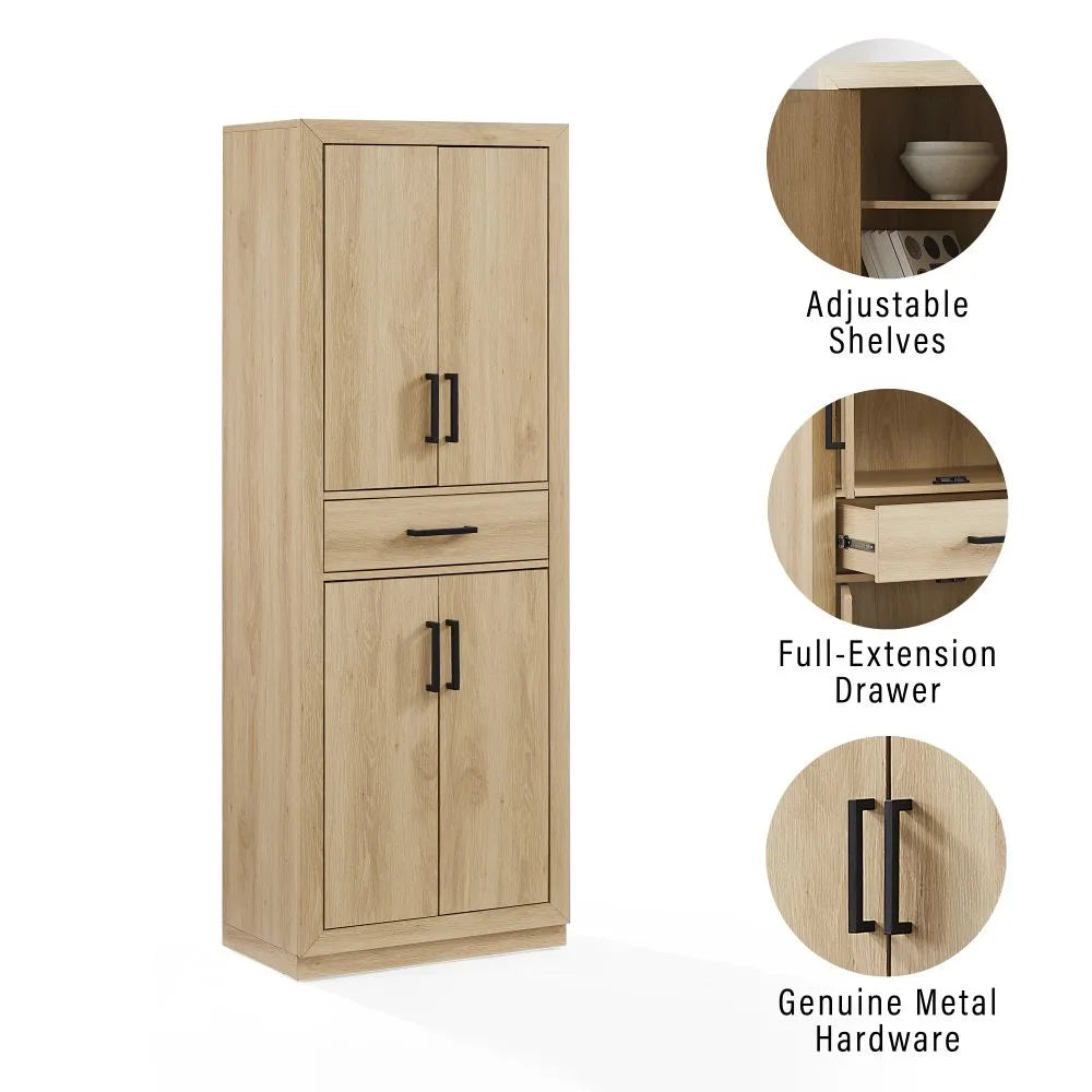 The Isla Pantry adds generous storage to any room in your home. Tuck away everything from dishes to linens in the large upper and lower cabinets. Organize your smaller items in the full-extension drawer. With a simple modular design, this pantry pairs seamlessly with other items in the collection, maximizing home organization.