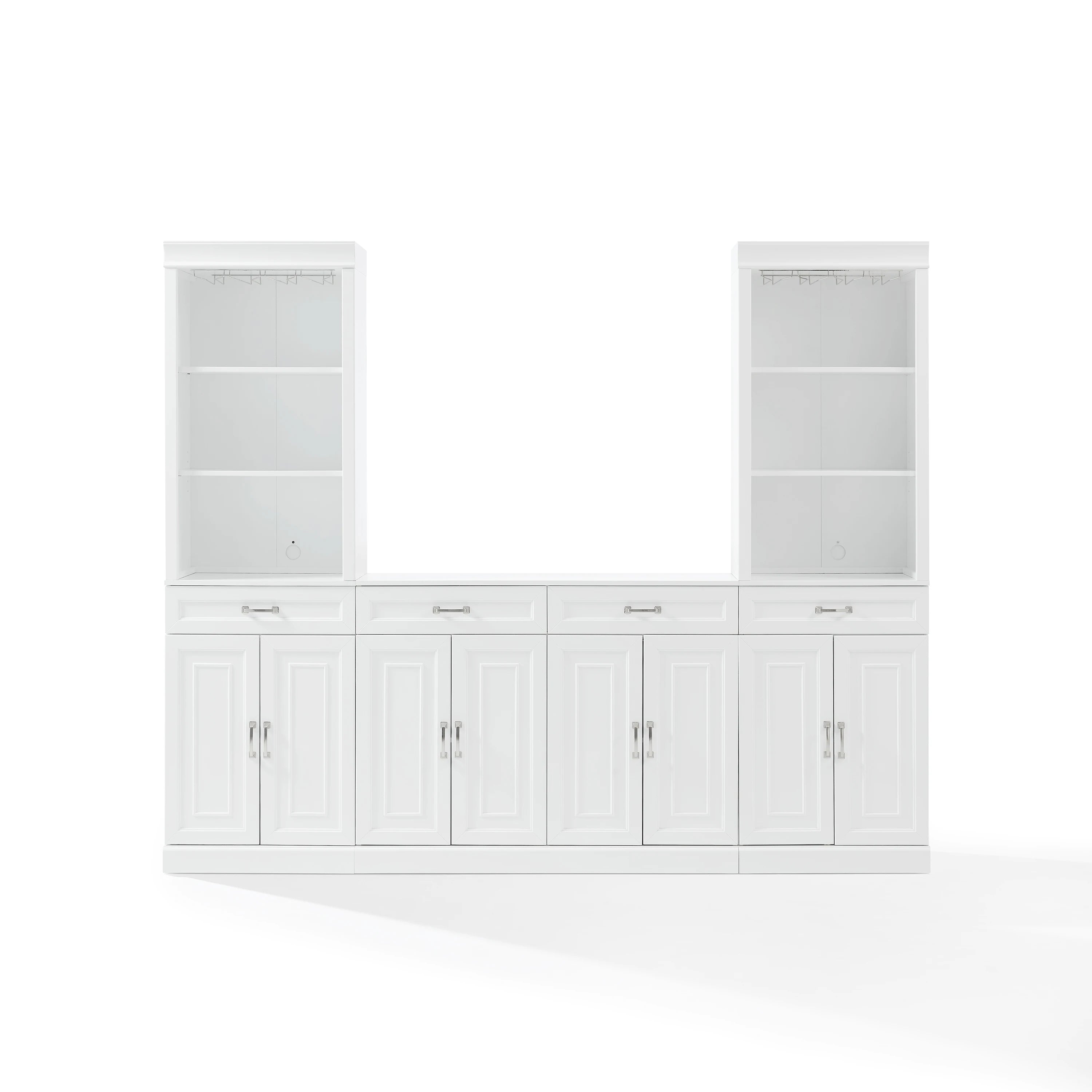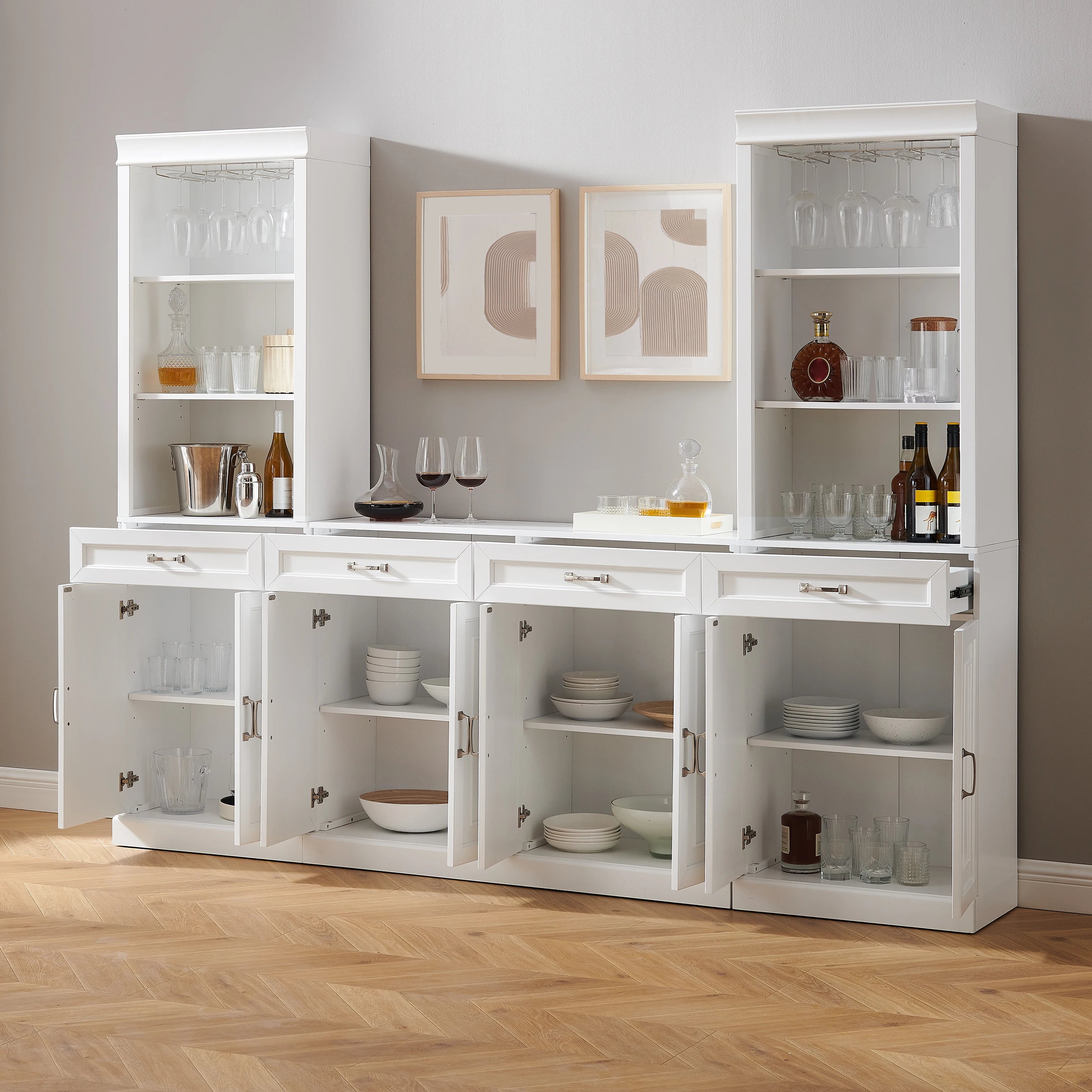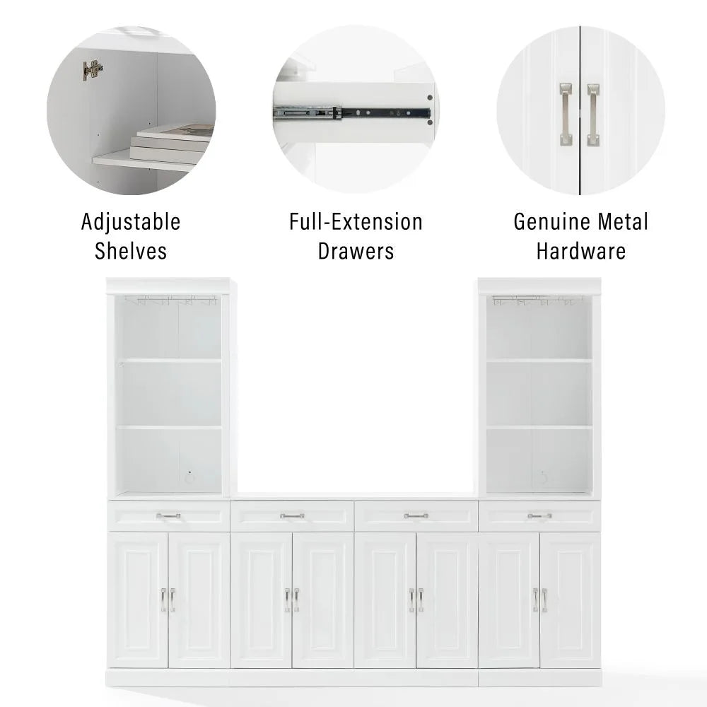 The Stanton 3pc Sideboard and Bar Set combines timeless style with modern functionality. Designed to resemble classic built-in cabinetry, this modular set includes a spacious sideboard and two bar cabinets that offer versatile storage for dining and entertaining. With full-extension drawers, adjustable shelves, and optional stemware racks, Stanton is the perfect solution for organizing serveware, barware, or décor. Whether used as a traditional buffet cabinet or an at-home bar, this set delivers elegance and practicality in equal measure.