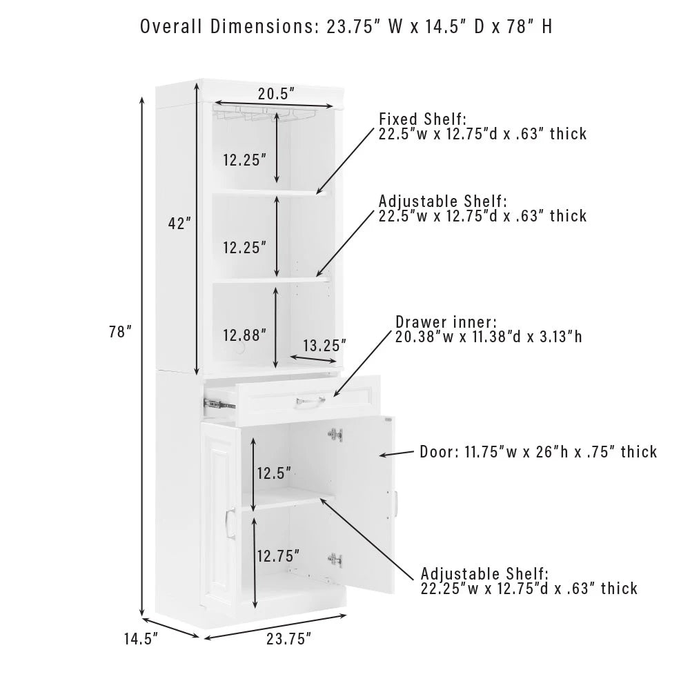 Bar Cabinet Dimensions: 23.75”W x 14.5”D x 42”H