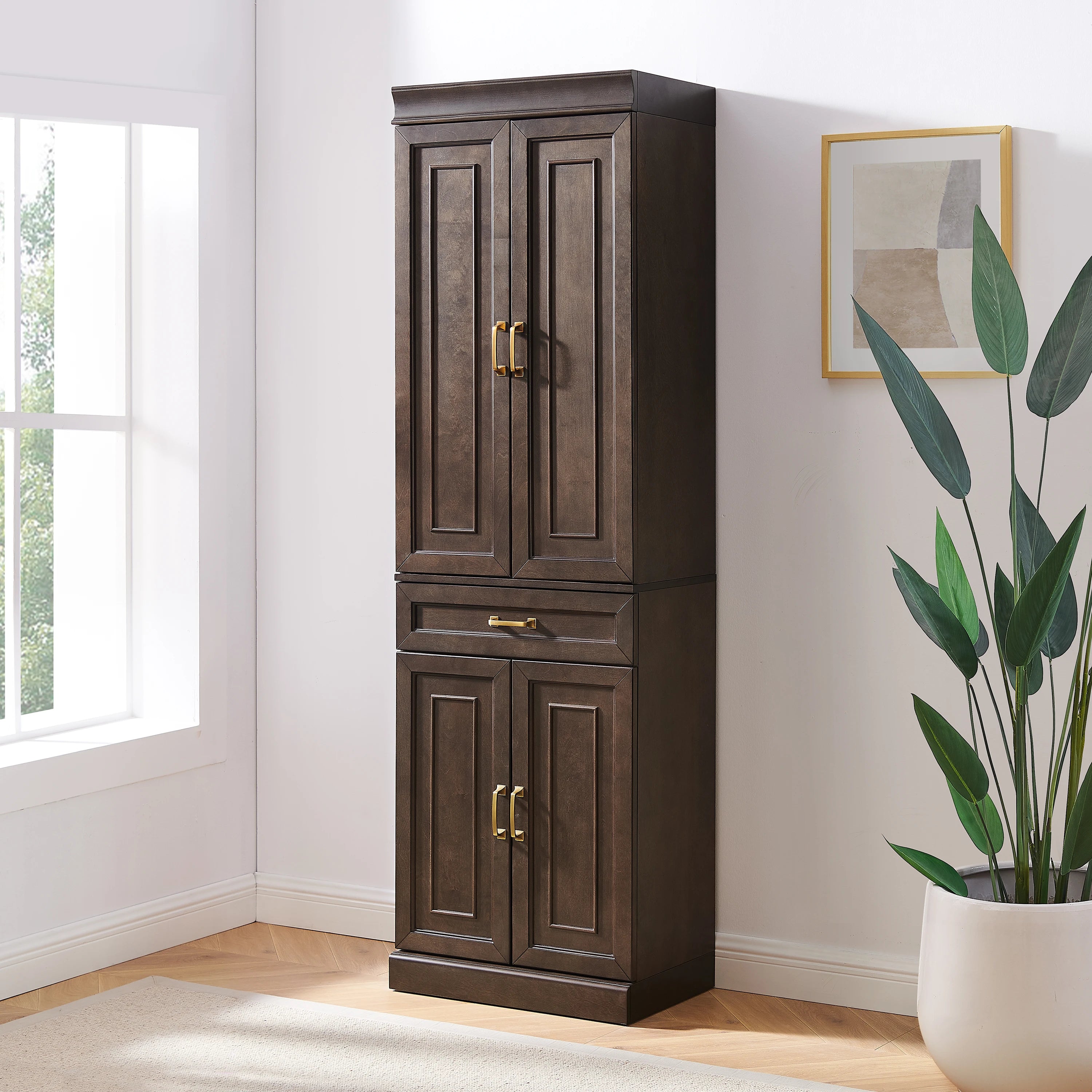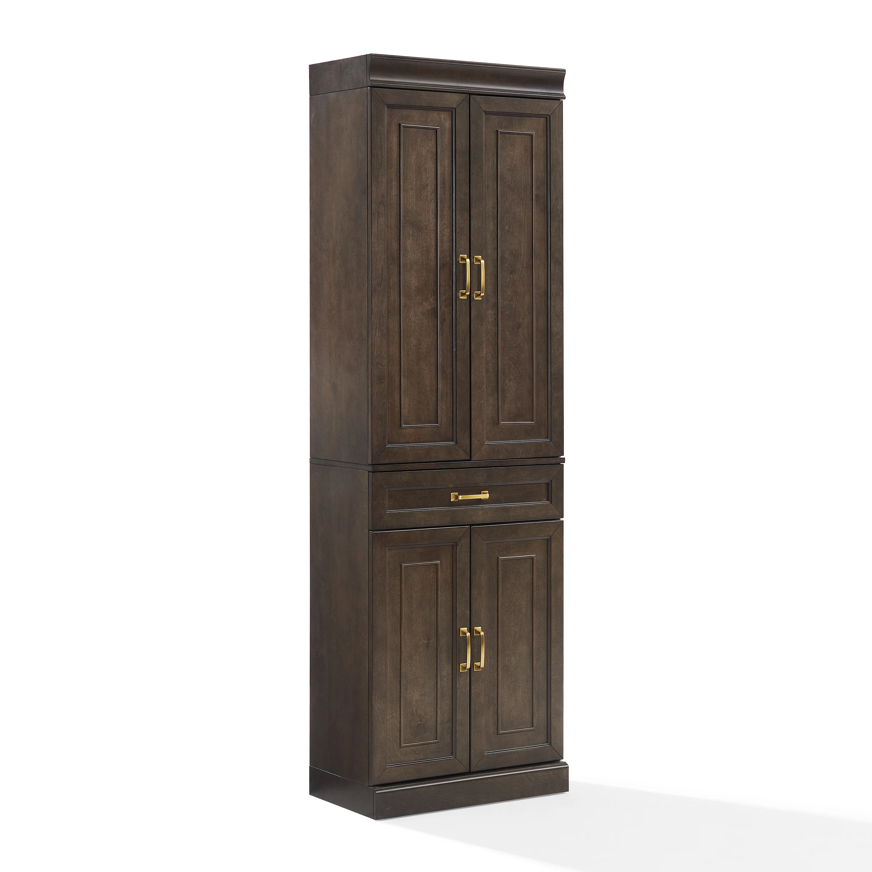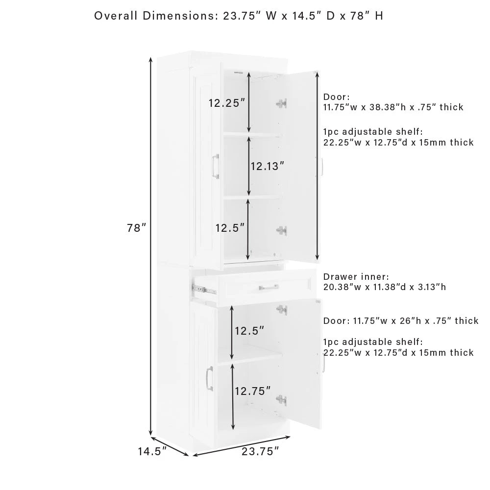 The Stanton Kitchen Storage Pantry combines classic styling with the versatility of modular design. Featuring adjustable shelves in the lower and upper cabinets plus a full-extension drawer, this storage cabinet is great for home organization. Panel doors keep everyday items out of sight, while the modularity of the Stanton pantry allows it to mix with other items in the collection for customizable storage.
