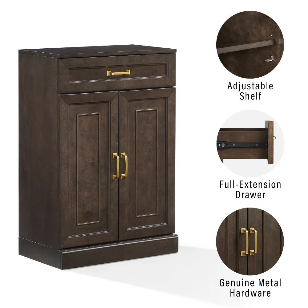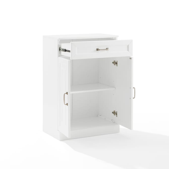 The Stanton Storage Cabinet combines classic styling with the versatility of modular design. Featuring an adjustable shelf plus a full-extension drawer, this cabinet is great for organizing smaller spaces. Panel doors on the cabinet keep everyday items out of sight, while the modularity of the Stanton Storage Cabinet allows it to mix with other items in the collection for customizable larger-scale storage.