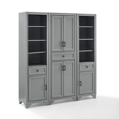 Charming and functional, the Tara 3pc Pantry set is no longer solely a kitchen item and will add traditional elegance to any room of your home. While the adjustable shelves in the upper and lower cabinets of the pantry are ideal for kitchenware or cleaning supplies, they also make a great place to store extra blankets, books, and board games. Add in the two tall cabinets with open adjustable shelving and you have display space as well. All of the cabinets feature beautiful metal hardware, as do the full-extension storage drawers in each unit. The storage drawers will be great catch-alls for odds and ends, making the Tara 3pc Pantry Set a perfect go-to for home organization.