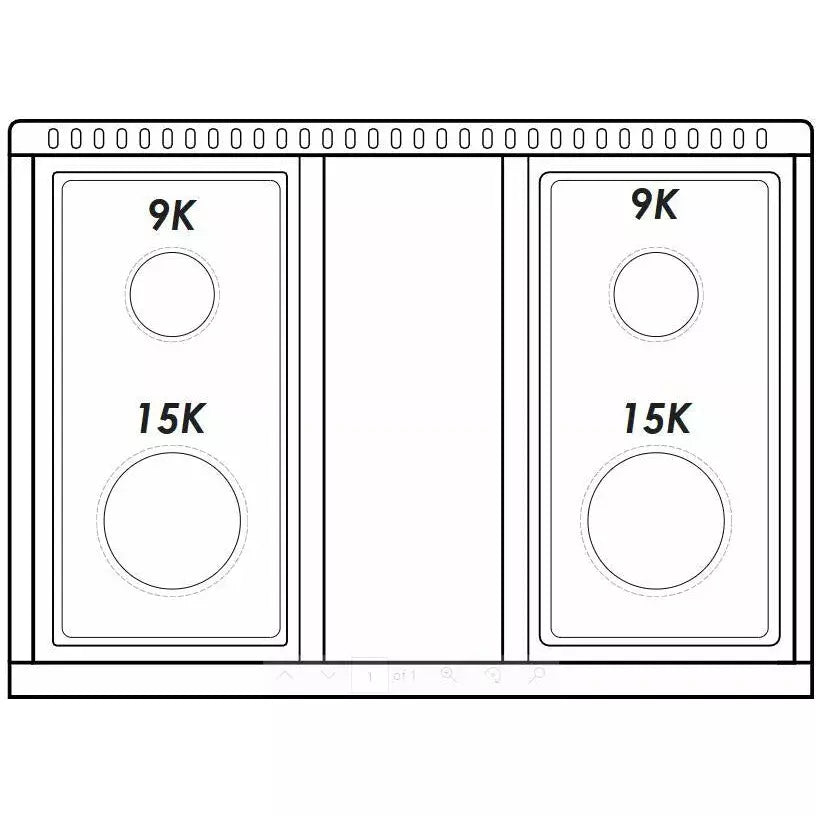 - Burner/Element Output 4 Small Burner 9,000 BTU