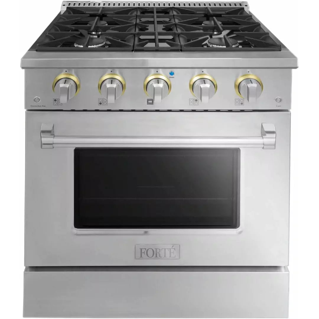 With a wide array of colors and styles, available in 24”, 30”, 36”, and 48” widths, FORTÉ Ranges combine beauty and efficiency to complement any kitchen. Featuring durable Italian burners, heavy-duty continuous grates, and versatile multi-functional ovens, our ranges are designed to impress even the most experienced chef. Removable Glass Door and Enamel finishes make for easy cleaning and upkeep, while a precise temperature system and 10,000 BTU Broiler put you in full control of your cooking experience.