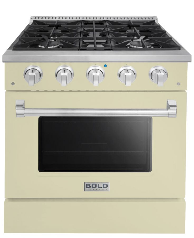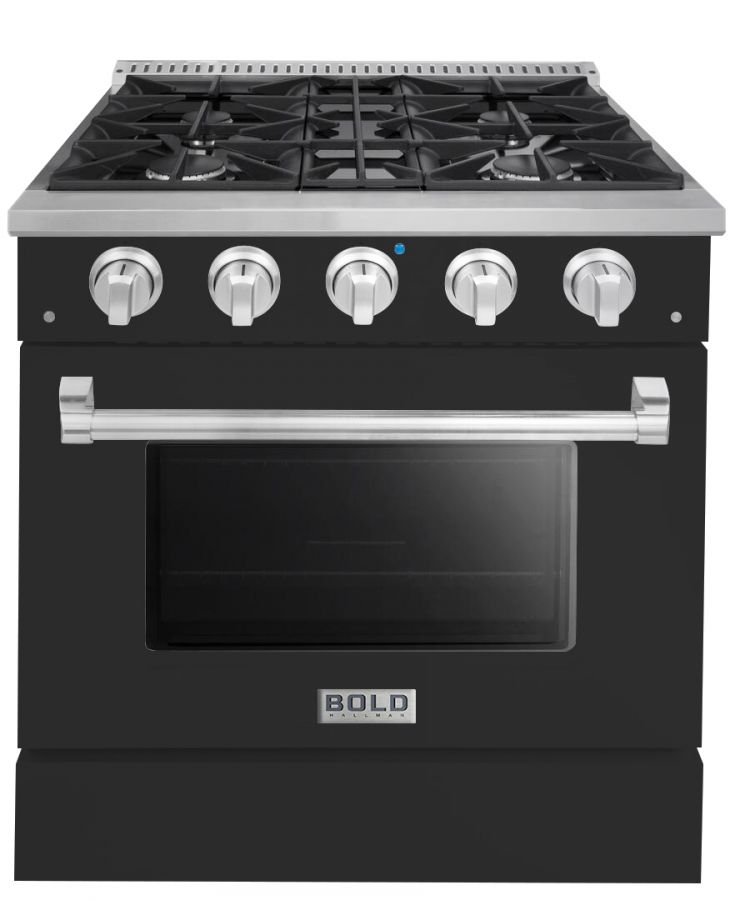 Hallman BOLD series 30-inch Freestanding Range, 3.53 Cu. ft. Total Oven Capacity, Multi-Functional Convection Oven, Viewing Window. The range comes with 4-sealed burners made in Italy, convenient continuous grates, and versatile multi-functional ovens, our ranges are designed to impress the most demanding chefs. Removable Glass Door and Enamel finishes make for easy cleaning and maintenance, while a precise temperature system and 10,000 BTU Broiler ensure quality results every time.