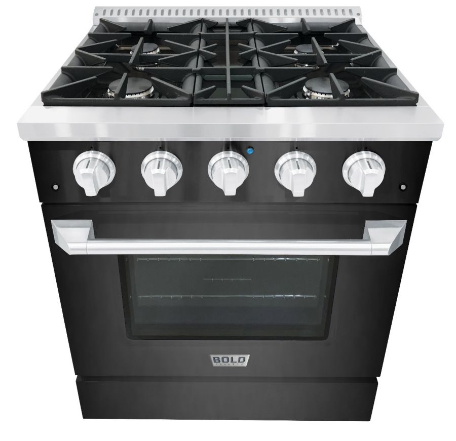 All Gas Range (Natural Gas) / Glossy Black / Bold Non-Vented Toe Kick - $2,899.00 USD