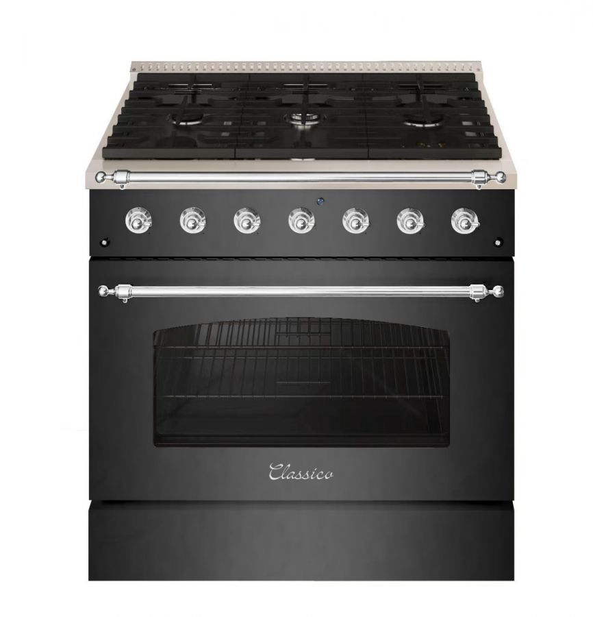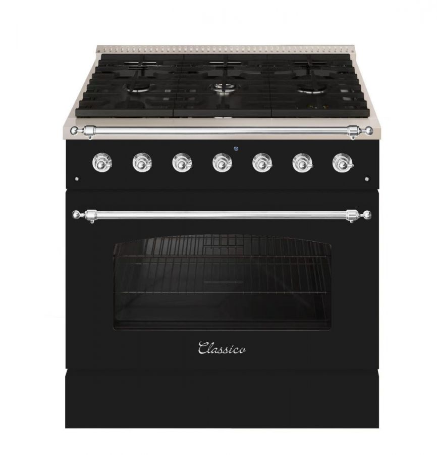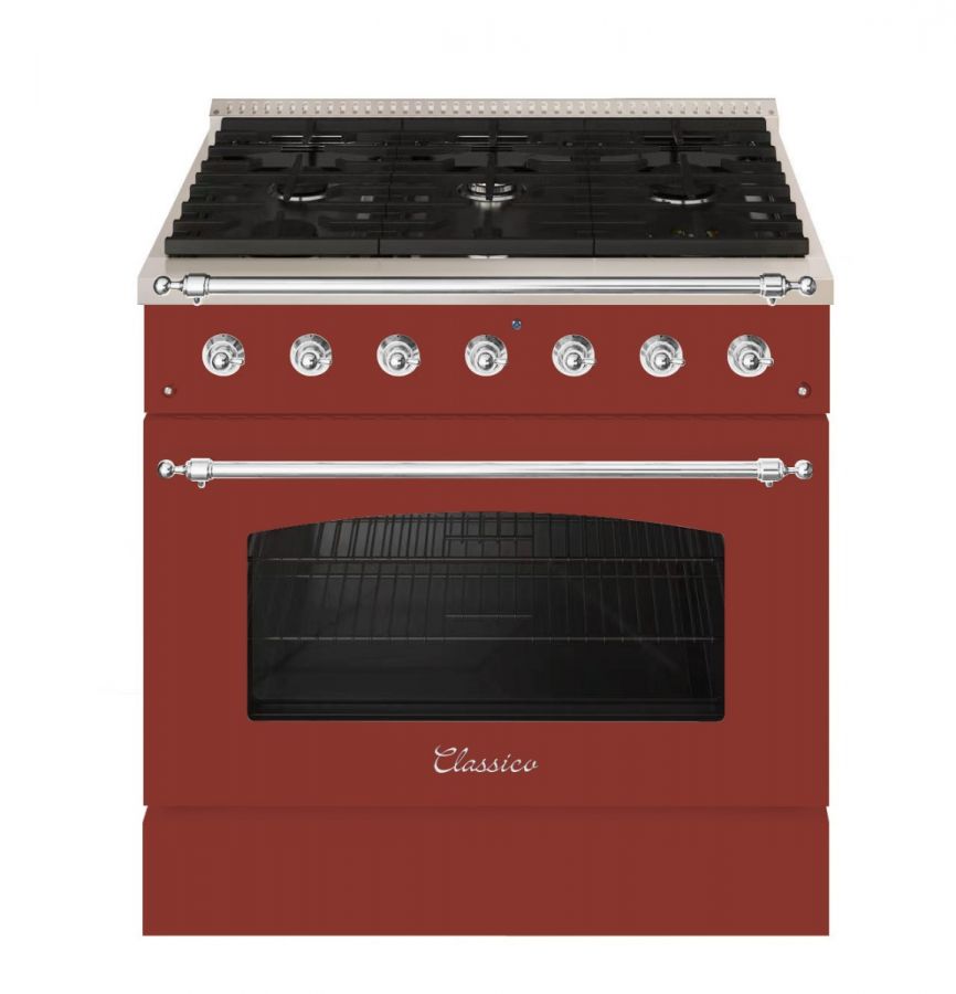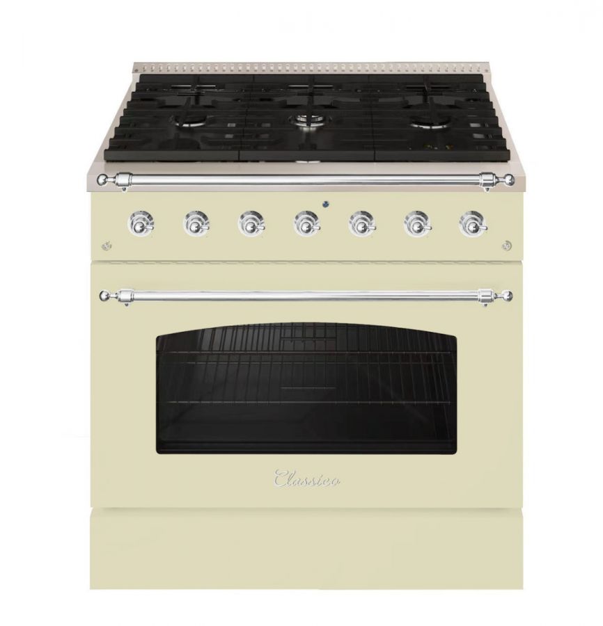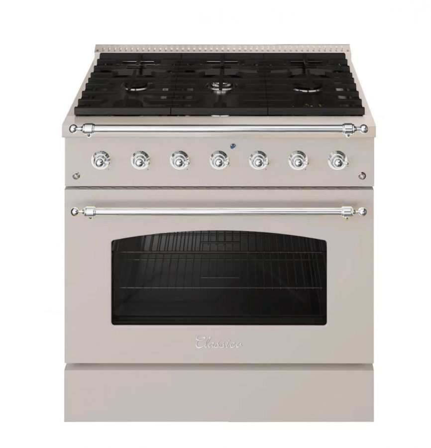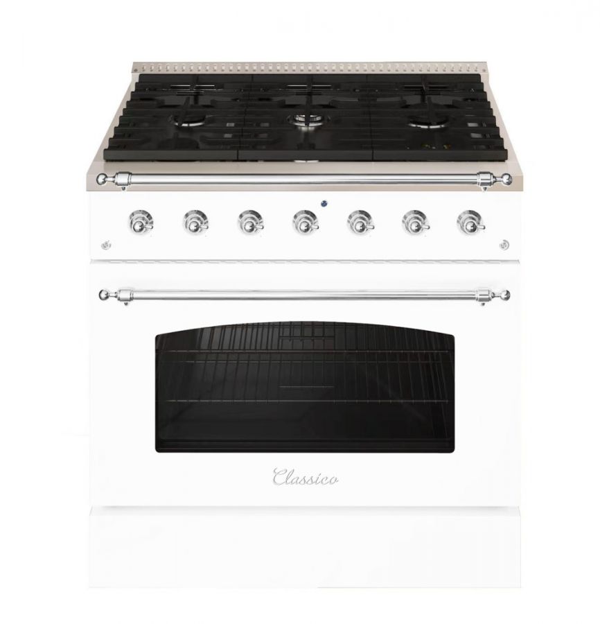 Hallman Classico Series 36-inch Freestanding Dual Fuel Range, 4.50 Cu. ft. Total Oven Capacity, Multi-Functional Convection Oven, Viewing Window. Dual Fuel Range comes with 6-sealed burners made in Italy, convenient continuous grates, and versatile multi-functional ovens; our ranges are designed to impress the most demanding chefs. Removable Glass Door and Enamel finishes make for easy cleaning and maintenance, while a precise temperature system and 10,000 BTU Broiler ensure quality results every time.