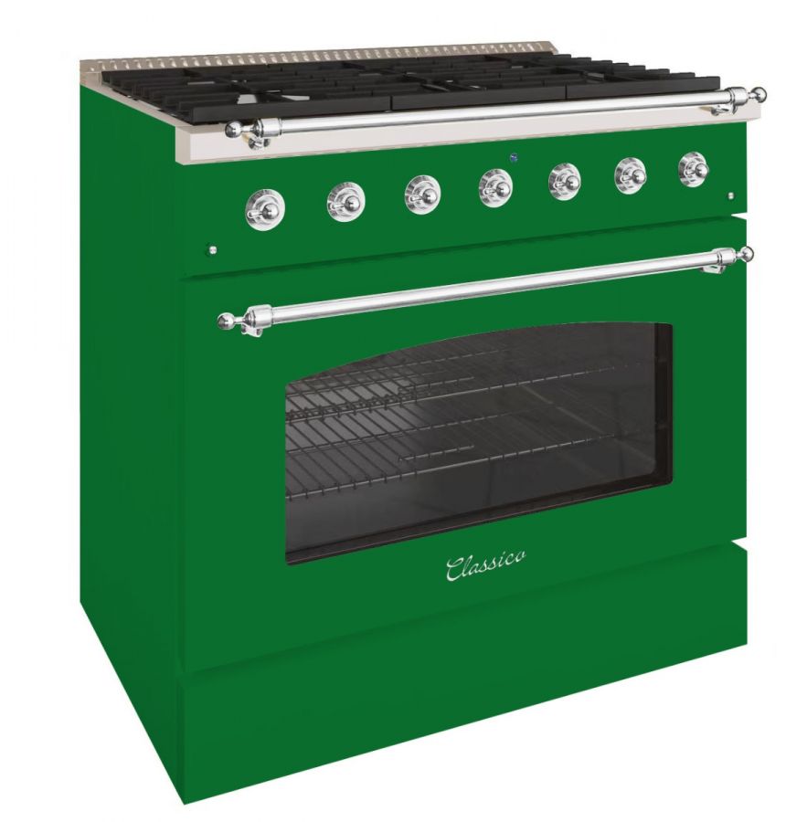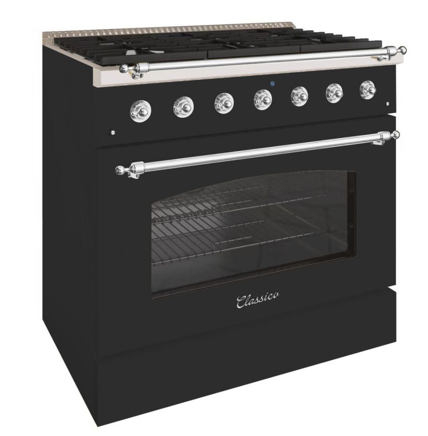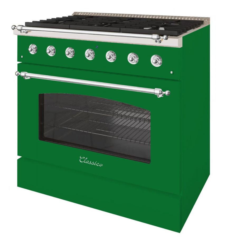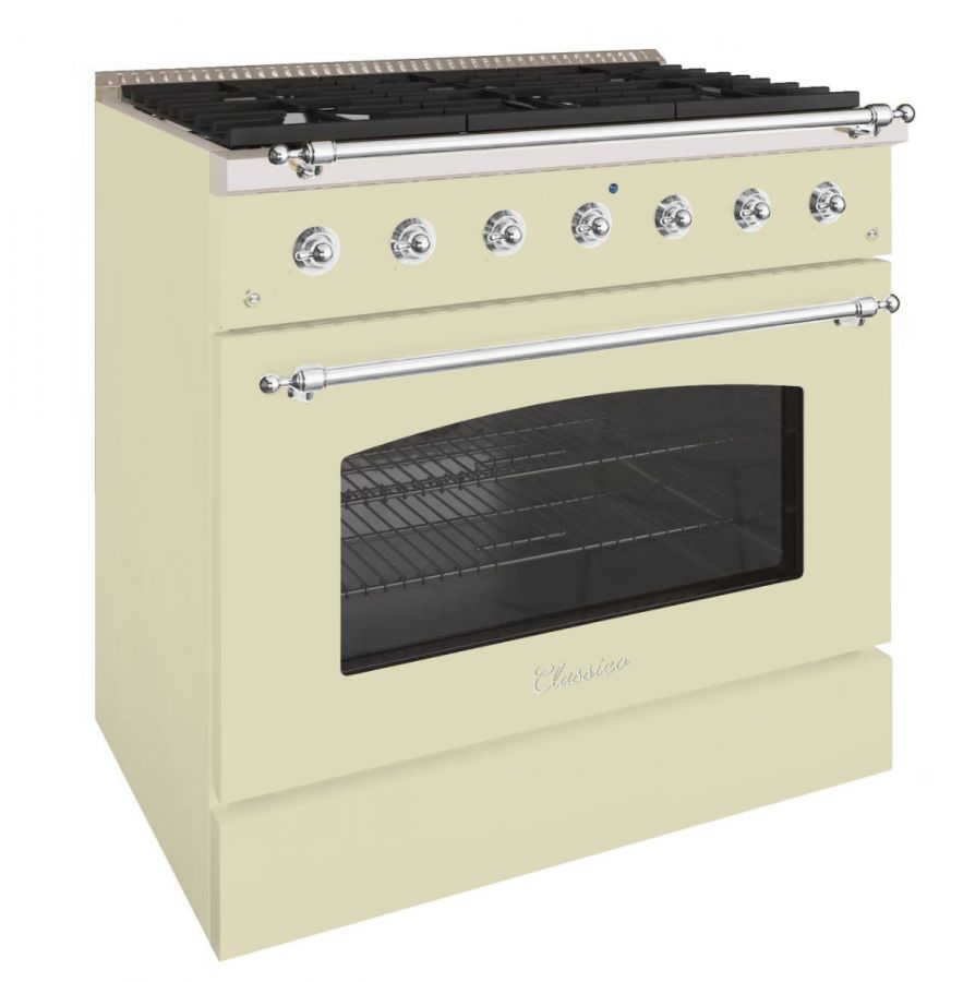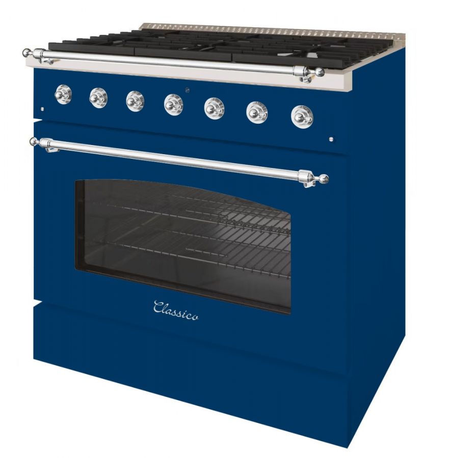 Hallman Classico Series 36-inch Freestanding Dual Fuel Range, 4.50 Cu. ft. Total Oven Capacity, Multi-Functional Convection Oven, Viewing Window. Dual Fuel Range comes with 6-sealed burners made in Italy, convenient continuous grates, and versatile multi-functional ovens; our ranges are designed to impress the most demanding chefs. Removable Glass Door and Enamel finishes make for easy cleaning and maintenance, while a precise temperature system and 10,000 BTU Broiler ensure quality results every time.