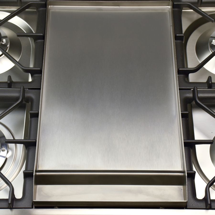 - Removable Griddle with an extra grate included to place over the largest oval burner in the industry, making it easy to poach large fillets of fish