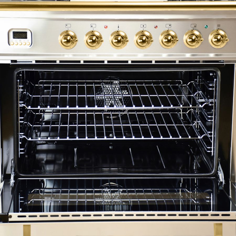 The oven 3.55 cu.ft. True European convection provides even heat distribution for perfect results, complete with convection bake, convection broil, grill baking, and standard bake functions. In addition, the oven includes electric rotisserie and 3-pane glass window for safety that can be removed for cleaning with mild soap (Not Dishwasher Safe). Beneath the oven there is a drawer designed to keep dishes warm between 125°-200° before serving. Manual controls and durable components minimize service repairs over the lifespan of the product. Hallman ranges are available in an array of colors and configurations with unique options and accessories, allowing the ability to customize to your taste. Hallman is the premium brand engineered for those who are passionate about cooking with the finest quality. Decades of proven craftsmanship ensure every Hallman range will be in service and style for generations. Handmade in Italy.