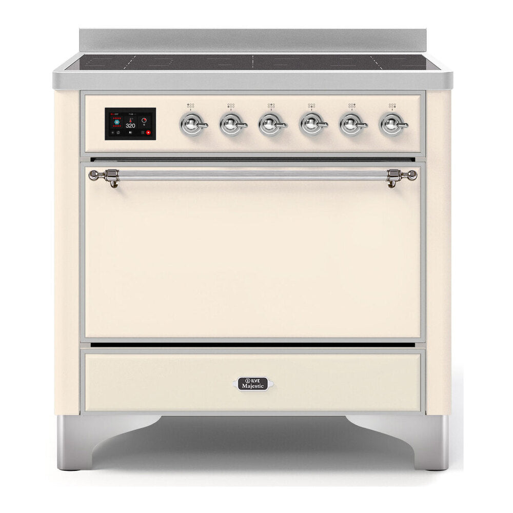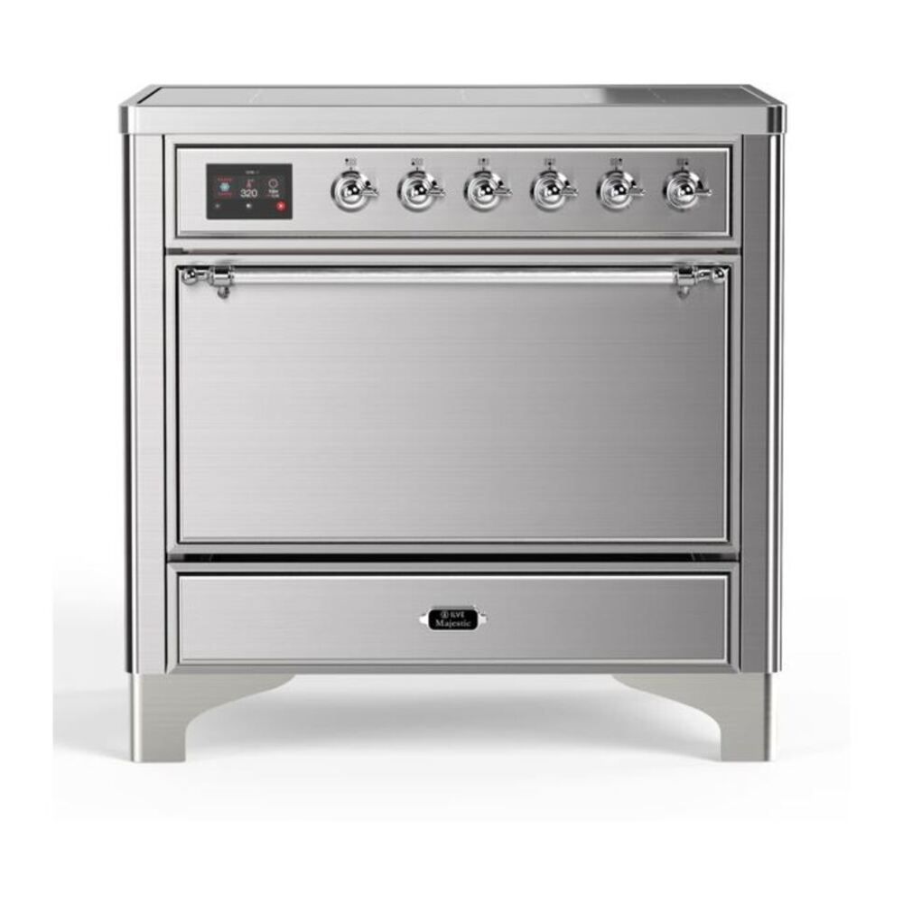 The 36" Majestic Series Induction Range by ILVE comes with 5 elements and a 3.5 cu. ft. capacity oven that will bring you the ultimate cooking experience to your kitchen. The large European Convection oven gives you the power to experiment with your dishes and get even cooking, while the full-width dish warming drawer gives the option to use residual heat of the oven to keep cooked food warm or warm your dishes before serving.