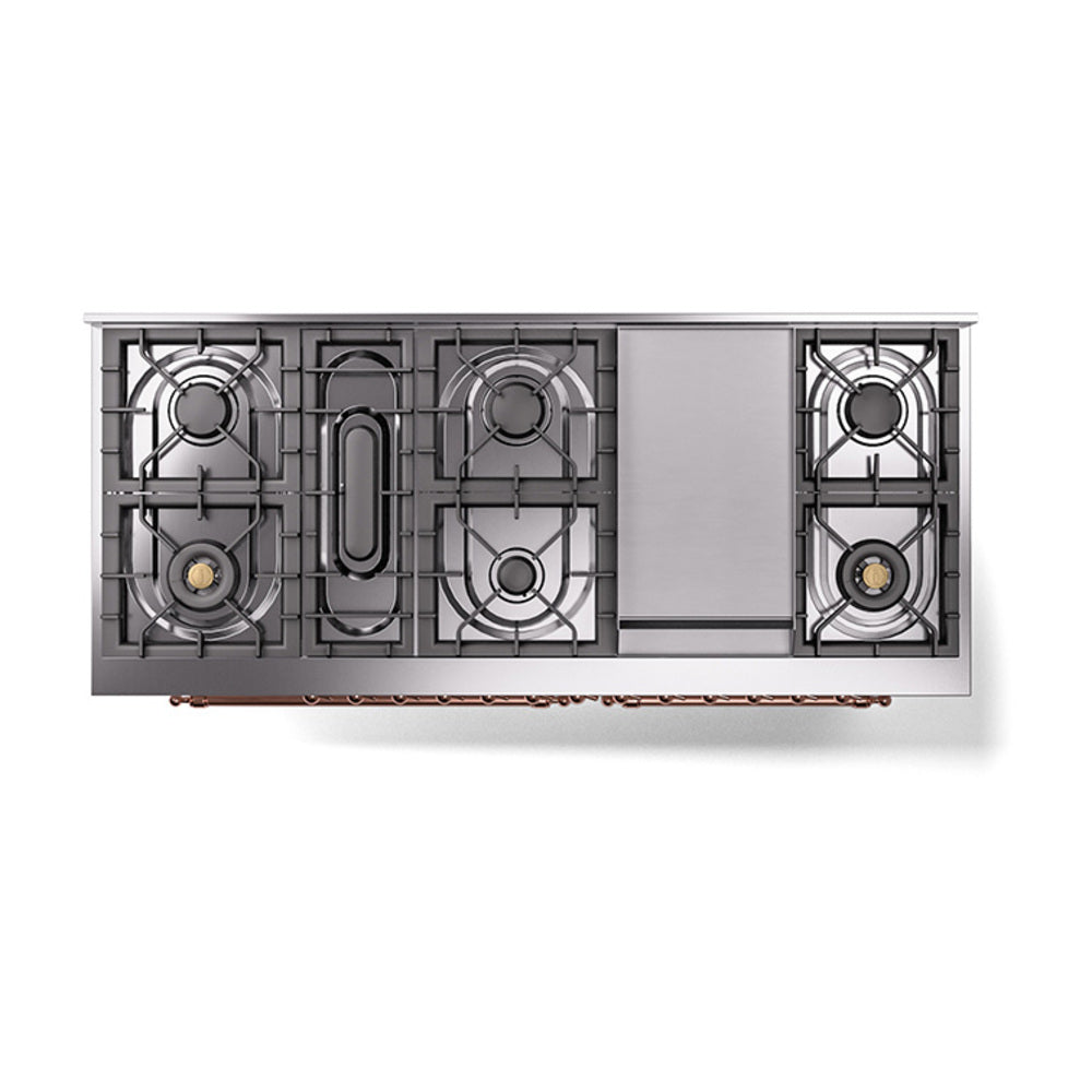 Introducing the new Nostalgie II 60″ dual fuel range, a classic addition with a touch of innovation to any kitchen. This range feature sealed burners equipped with total black brass burner that has a non-stick nanotechnological coating, heavy cast iron grates, 3.5 + 2.3 cu. ft. dual oven capacity and soft closing door system.