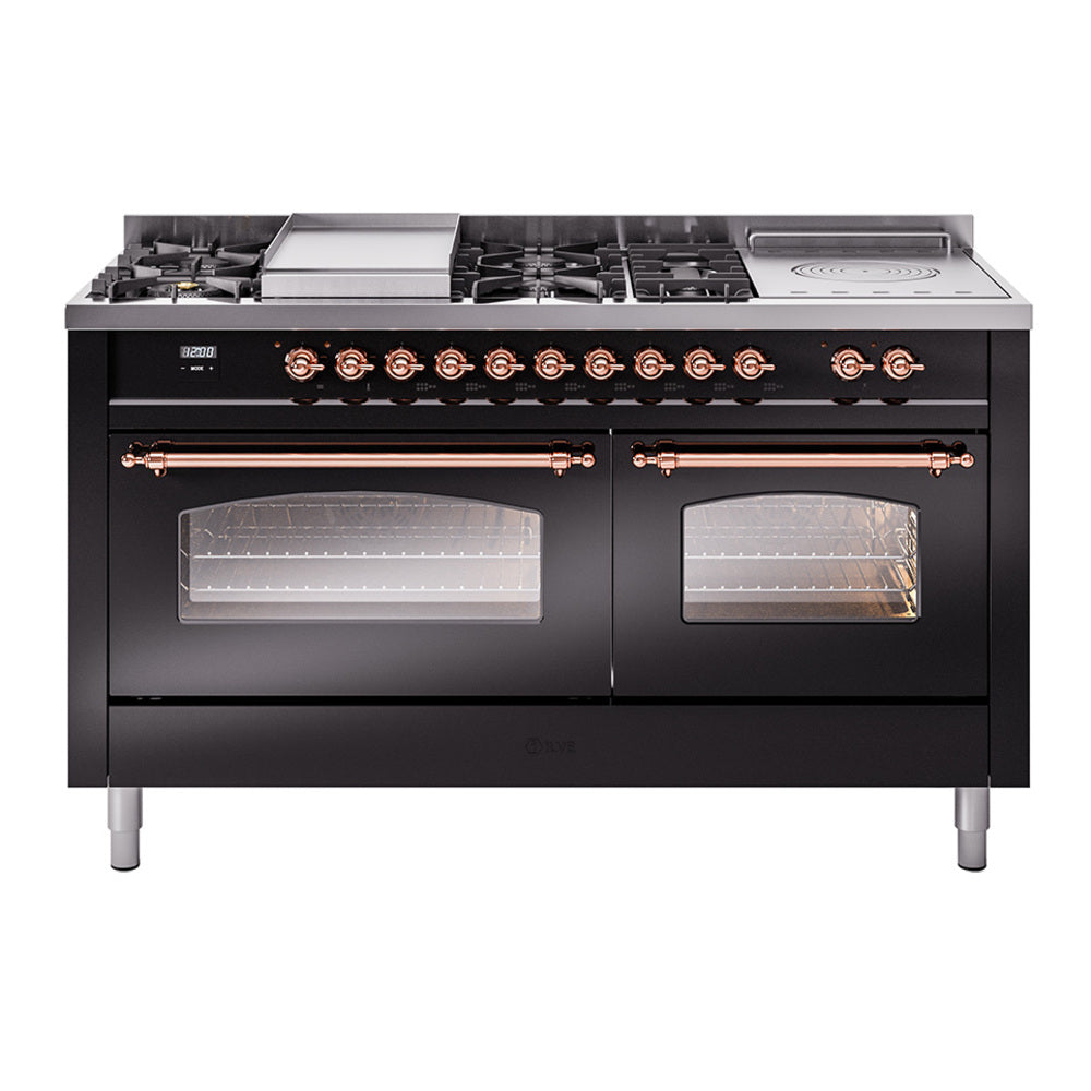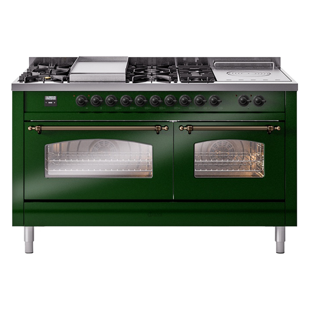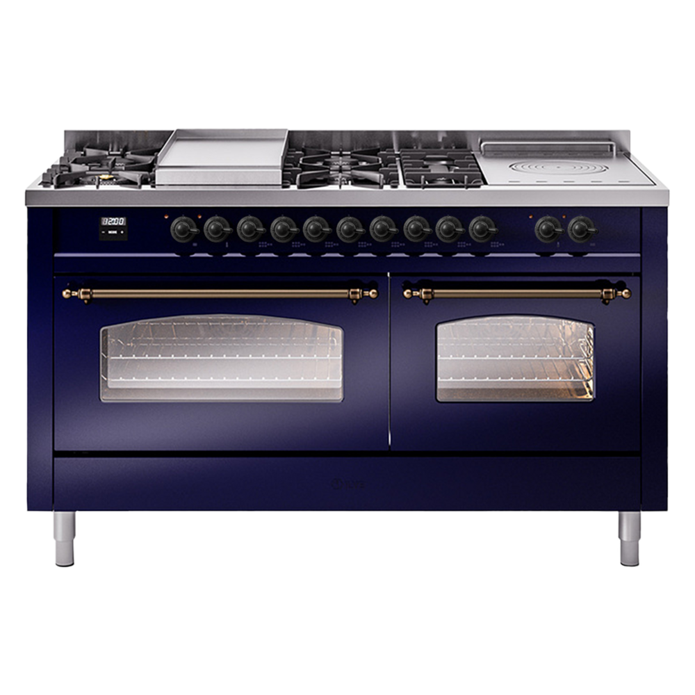 Introducing the new Nostalgie II 60″ dual fuel range, a classic addition with a touch of innovation to any kitchen. This range feature sealed burners equipped with total black brass burner that has a non-stick nanotechnological coating, heavy cast iron grates, 3.5 + 2.3 cu. ft. dual oven capacity and soft closing door system.