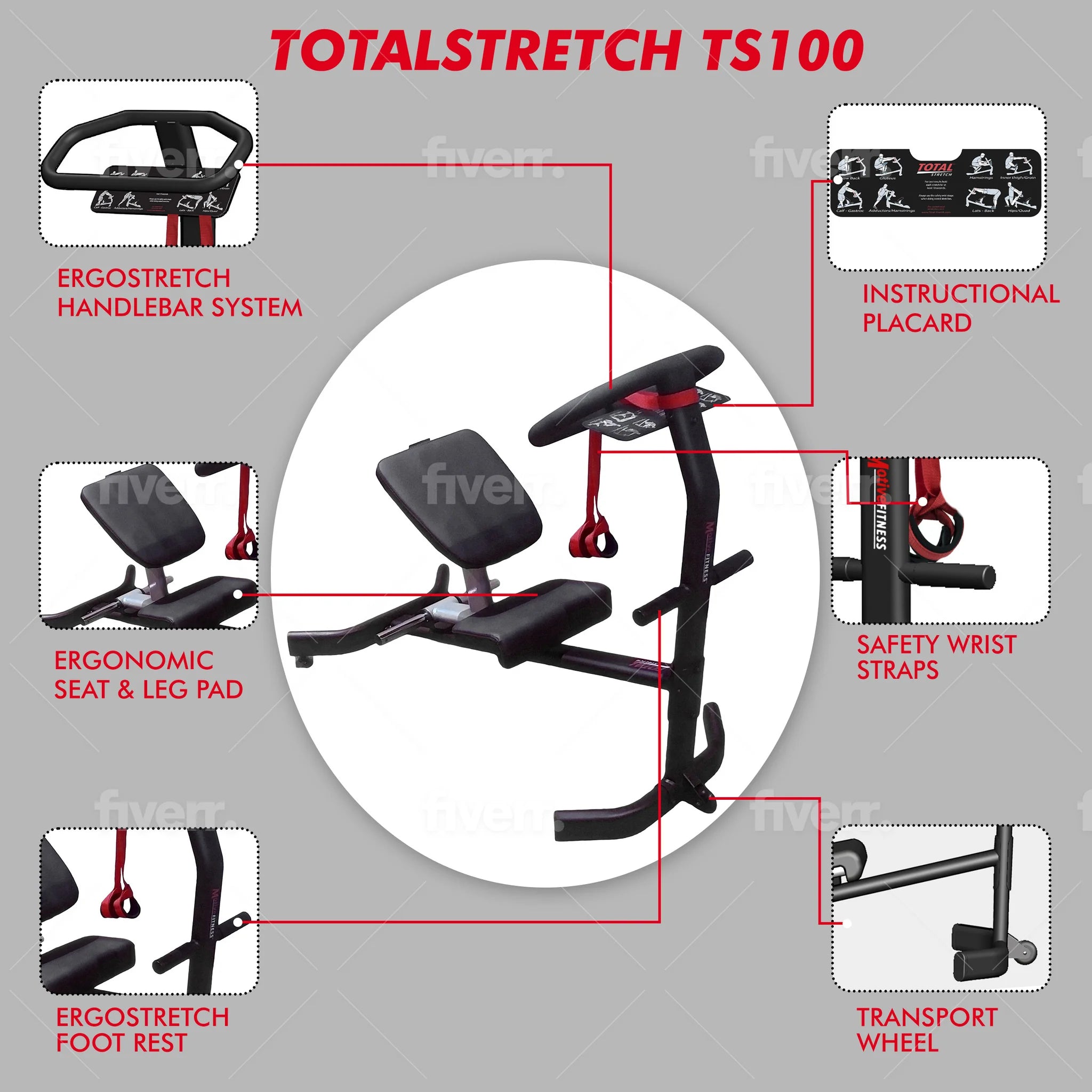 Designed as the intro model for the commercial market, the TotalStretch® TS100 offers many of the same features as the TS150 in a more compact footprint. It revolutionizes stretching by allowing users to safely and effectively perform a comprehensive set of stretches all in one place—seated or standing, from the front or the back.
