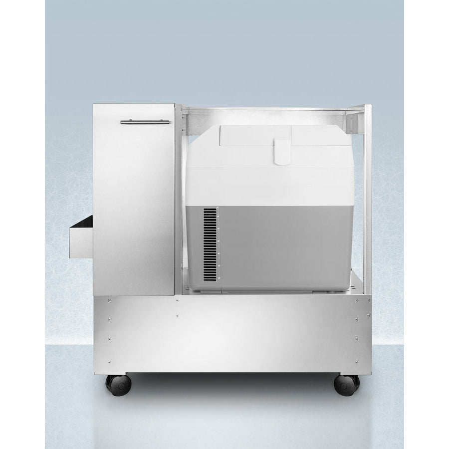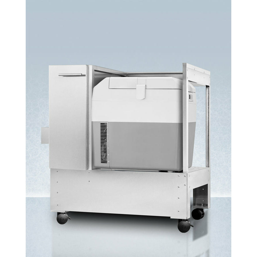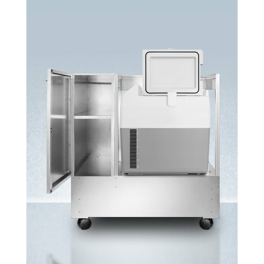 Combines our stainless steel wheeled cart with SPRF36 portable refrigerator-freezer for a completely mobile vaccine station