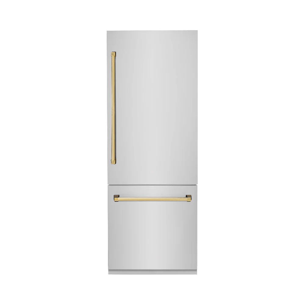 The ZLINE 30 in. 16.1 cu. ft. Built-In Bottom Freezer Refrigerator with Water Dispenser and Ice Maker provides the ultimate upgrade to the center of your home by pairing premium dual cooling technology with enhanced storage capacity for multiple grocery items. Achieve ZLINE Attainable Luxury® excellence with innovative features designed to enhance your kitchen’s cooling and freezing capability.