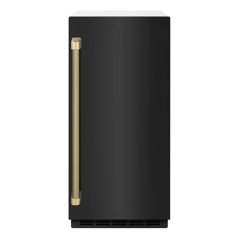 The ZLINE Autograph Edition 15 in. Touchstone Clear Cube Ice Maker with Drain Pump and Black Stainless Steel Door ICCDZ-BS-15-K delivers professional-grade performance and sophistication to your kitchen or bar. Designed with advanced clear-cube freezing technology, this unit produces crystal-clear ice ideal for craft cocktails, iced coffee, or everyday use.